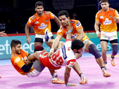 Bengaluru: Vikas Kandola was once again unstoppable as Haryana Steelers cruised to a 41-27 victory against Puneri Paltan in a Vivo Pro Kabaddi match at Bengaluru on Monday. [caption id=“attachment_7272131” align=“alignleft” width=“380”]  Vikas Kandola played a key role in Haryana Steelers’ victory with 11 raid points. Image credit: Pro Kabaddi[/caption] The star raider clinched a Super 10 (11 raid points) as his team outperformed the Pune unit in all departments to jump to the second on the points table. The match had been billed as an encounter between the hard-tackling Pune side and the raid-heavy Haryana team. Nitin Tomar started brightly for Pune as the five-star raider produced a ‘Dubki’ to take out the experienced Dharmaraj Cheralathan and Kandola in the second minute. Super Tackles, a big source of points in Season 7, kept the scores ticking as the match became a cagey affair towards the end of the first half. But two multi-point raids by in-form Kandola forced an All-Out on Pune and handed over the momentum to Haryana. The half ended with Haryana leading 18-11. The Steelers came into the game after three wins in as many games and they started the second half with renewed energy. Kandola was in the thick of things once again but Haryana’s raiding duo of Vinay Kumar and Prashanth Kumar Rai were more than an able support crew to Kandola, picking up vital points whenever the star raider went out. Haryana enforced another All-Out on Pune with less than nine minutes left in the match to all but seal the game.