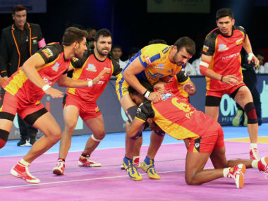 Nagpur: Bengaluru Bulls eked out a close 32- 31 win over Tamil Thalaivas in a pulsating encounter of the Pro Kabaddi League on Friday. [caption id=“attachment_3895859” align=“alignleft” width=“380”] Bengaluru Bulls players in action against Tamil Thalaivas. Twitter: @BengaluruBulls[/caption] Ajay Kumar and Ajay Thakur starred for the winners as they stamped their authority with superb raids on their rivals from the onset. By virtue of their strong showing, the Bulls took a 12-6 lead over Thalaivas at the halfway mark. After the break, the Thalaivas came back strongly and took out Sachin Kumar and Ajay Kumar. But the Bulls held on to their nerves and after a couple of time outs and raging defence, the Bengaluru outfit triumphed over the Thalaivas with raid points 15 and 16, tackle points 13 and 8, all out points 4 and 4 and extra points 0 and 3.