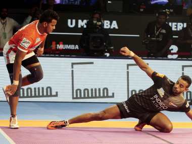 Greater Noida: U Mumba finally won the Maharashtra derby against Puneri Paltan with a 31-22 scoreline in the Pro Kabaddi League in Greater Noida on Saturday. Puneri Paltan had drawn and lost the last two contests against U Mumba. Fazel Atrachali had a near flawless match as he got 4 tackle points from his 5 tackle attempts. More GB of Puneri Paltan and Vinod Kumar shocked the opponents as they got 4 and 3 tackle points even though they are raiders for their respective teams. [caption id=“attachment_5499991” align=“alignleft” width=“380”] U Mumba recorded a comfortable win over rivals Puneri Paltan in the Pro Kabaddi League. Image Courtesy: PKL[/caption] Girish Ernak had a mediocre performance as he only got 1 tackle point from 3 tackle attempts. Fazel Atrachali was given the Orange Sleeve for hoarding the highest number of tackle points this season after Saturday’s incredible performance. Deepak Kumar Dahiya started the match with a running hand touch on Surender Singh to open the floodgates but this was overturned by U Mumba in the next 4 minutes. U Mumba took the lead and kept a gap of 4 points by the 5th minute to make it 5-1. With two men on the mat, Puneri Paltan got a strong Super Tackle by Monu on Darshan Kadian to make it 5-3 in the 6th minute. Puneri Paltan tried to get touch and tackle points to regain their full strength but was All Out in the 11th minute raid by Abhishek Singh. Atrachali was the star for U Mumba as he got 4 tackle points in as many tackles. The half ended with U Mumba leading by 9 points with the scoreline at 19-10. The second half saw Puneri Paltan try to change their tactics as they worked on their defense to reduce the gap through Super Tackles. Shubham Shinde got an ankle hold on Vinod Kumar while More pulled him from reaching the midline in the first raid of the half to get a Super Tackle. They continued with this technique as they reduced a 9 point lead in the start to a 4 point lead by the 30th minute by regularly picking up Super Tackles. Pune continued to have just three men on the mat for a while. The 32nd minute raid by Abhishek Singh became the catalyst for U Mumba to inflict an All Out on Pune as he got both Ravi Kumar and Sandeep Narwal. This raid was reviewed by Puneri Paltan as they believed that the raider was pushed out of the mat before he crossed the midline with his hand, only to notice in the replays that his body was still in the lobby. The next raid saw Surender Singh dash Deepak Dahiya out of the mat and complete the procedure of an All Out to make it 28-18. Bulls continue dream run Bengaluru Bulls continued their impressive run by winning their fifth match in Pro Kabaddi League and top the Zone B table. Rohit Kumar was the saviour for Bengaluru Bulls as he saved them from being all out on three occasions after he was the only player left on the mat for his team. He tallied up 14 points for his team and take them to the victory. Prashant Kumar Rai had an average performance while Sachin Kumar and Nitesh Kumar tried their best to dominate the raiders of Bengaluru with 4 tackle points each. UP Yoddha were entering the match after being thrashed by Tamil Thalaivas the previous night while Bengaluru Bulls were starting on a positive note after their close win over Patna Pirates. It looked like they had embraced and learnt from yesterday’s match as they dominated Bengaluru Bulls in the first few raids as they took a 5-0 lead on them by the 3rd minute. Bengaluru Bulls opened their score with a Super Tackle effort by Ashish Sangwan on Prashant Kumar Rai in the 5th minute to make it 5-2. Bengaluru Bulls continued to use this tactic as they equalized with UP Yoddha by the 8th minute with another Super Tackle by Sandeep on Shrikant Jadhav to make it 7-7. UP Yoddha reduced Bengaluru Bulls to one man, Rohit Kumar, but his resilience saved Bengaluru from an All Out in the 11th minute with a Super Raid by getting Nitish Kumar, Sachin Kumar and a bonus point. He did this once again in his 14th minute raid to get Jeeva Kumar out cheaply and take the lead by 12-13. He couldn’t do it a third time as he ran out of time to reach the midline and hence conceded an All Out and make it 16-14 in favour of UP Yoddha. The half ended with UP Yoddha leading Bengaluru Bulls by 5 points at 20-15. Bengaluru Bulls continued their great first half’s form to the second half to constantly reduce the gap. Rahul Chodhary had a bad night with entering the lobby and conceding a Self Out on 2 previous occasions but he made an impact in the 22nd minute to get a strong ankle hold on Shrikant Jadhav to start the on slaught and make it 21-16. They reduced it to a 2 point lead by the 25th minute with 22-20 on the score board. The 29th minute saw Rohit Kumar finally get his first Super 10 of the season as he got Sagar Krishna ushered to the bench with a hand touch and make it 24-22. The 31st minute saw UP Yoddha concede an All Out after a great game and hand the lead to Bengaluru Bulls after Rohit Kumar got Prashant Kumar Rai and Sagar Krishna out and make it 25-28. Raju Lal Choudhary hammered Shrikant Jadhav with a great dash from behind his back and push him out of the mat in the 33rd minute and make it 25-31. Rishank Devadiga entered the match in the 34th minute to try and change the situation but failed as Bengaluru Bulls didn’t let the lead reduce immensely. Pawan Sehrawat got an amazing raid in the 39th minute to get Nitesh Kumar and Narender and thus get two strong defenders out of three out of the equation. With inputs from Press Trust of India