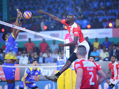 Skipper Jerome Vinith guided Calicut Heroes to a dominating 5-0 win over Kochi Blue Spikers on the eighth day of the Pro Volleyball League on Saturday. [caption id=“attachment_6058451” align=“alignleft” width=“380”] Action from the Pro Volleyball League game between Kochi Blue Spikers and Calicut Heroes. Image courtesy: PVL[/caption] Calicut registered a bonus point after beating Kochi 15-11, 15-9, 15-14, 15-13, 15-10 in a lop-sided contest in front of a packed house. Jerome scored 16 points (14 spikes and two serves) for Calicut, while K Praveen Kumar put up a valiant effort for Kochi with 10 points (nine spikes and one block). Ajith Lal and Vinith also became the leading scorers of spike points with 38 and 33 respectively from three matches. Paul Lotman was adjudged the player of the match. Saturday’s defeat was Kochi Blue Spikers’ first after four games.