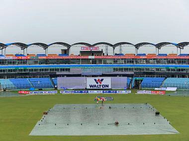 Rain washed out the fourth day’s play in the first Test between Bangladesh and South Africa on Friday. [caption id=“attachment_2361536” align=“alignleft” width=“380”]  Cricket officials walk across the playing surface as the rain delayed play on the fourth day of the first cricket Test match between Bangladesh and South Africa. AFP[/caption] Match officials at the Zahur Ahmed Chowdhury Stadium in Chittagong called off play at 1:25pm (0725 GMT). South Africa, who made 248 in the first innings, bowled out Bangladesh for 326 and reached 61-0 in their second knock when bad light forced an early stumps with 24.5 overs left to be bowled on the third day. Openers Stiaan van Zyl and Dean Elgar were on 33 and 28 runs respectively, whittling down Bangladesh’s first innings lead to 17. The second and final Test of two-match series will be held in Dhaka from July 30 to August 3. AFP