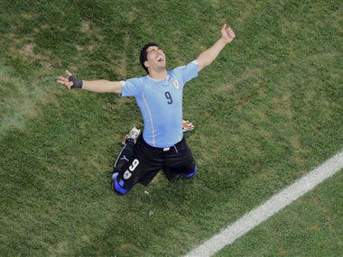 Luis Suarez scored twice to give Uruguay a 2-1 victory over England at the World Cup on Thursday, making an instant impact on his return from injury to revive his team’s Group D campaign. The Liverpool striker, who hadn’t played since undergoing surgery on his left knee last month, lashed in the winner in the 85th minute, after seeing his first-half opener canceled out by Wayne Rooney. After surprisingly losing its Group D opener to Costa Rica, Uruguay’s qualifying chances have now been given a major lift, while England’s hopes of advancing to the round of 16 are in real jeopardy after its worst World Cup start in more than half a century. [caption id=“attachment_1579625” align=“alignleft” width=“380”]