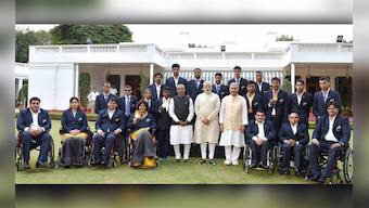 Prime Minister Narendra Modi meets with the participants of the Rio Paralympics 2016, in New Delhi on Thursday. Sports minister Vijay Goel and MoS & PCI president Rao Inderjit Singh were also present. PTI