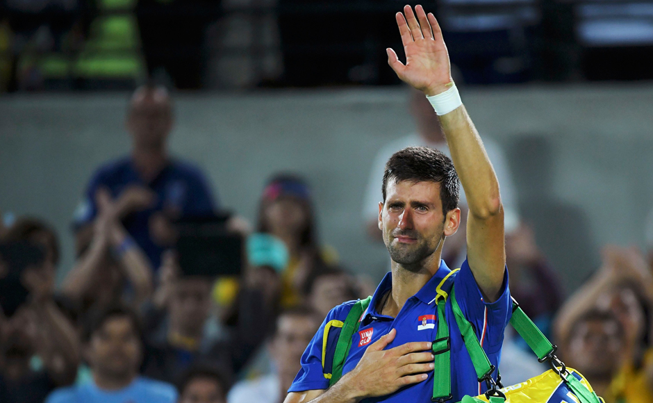 Serbia’s Novak Djokovic looks distraught as he was beaten by Argentina’s Juan Martin Del Potro in the first round of men’s singles. Reuters