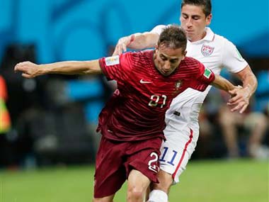 Manaus: A superb header by Silvestre Varela deep into extra time saved world player of the year Cristiano Ronaldo and Portugal from crashing out of the World Cup finals on Sunday as it secured a 2-2 draw with the United States. The Americans had looked to be safely into the last 16 after second-half goals by Jermaine Jones and Clint Dempsey saw them come back from 1-0 down – a goal by Nani – to gallop into the lead. However, with only seconds remaining, one sublime cross from a pretty anonymous Ronaldo was met by Varela and it soared past Tim Howard to give Portugal a lifeline as a further defeat after thire 4-0 hammering by Germany in the opening game would have seen them out. The United States – who reached the last 16 in 2010 only to lose to Ghana – are on four points along with Germany, who they play in their final group game, and who their coach Jurgen Klinsmann led at the 2006 finals. Ghana and Portugal both have one point and also play on Thursday. [caption id=“attachment_1583971” align=“alignleft” width=“380”]  United States’ Alejandro Bedoya, right, challenges Portugal’s Joao Pereira: AP[/caption] Klinsmann, who was also within seconds of being the first coach to guide the USA to two successive wins at a finals since 1930, was phlegmatic about the dramatic dashing of their hopes. “Obviously the last second is unfortunate but my guys were magnificent,” said Klinsmann, who won the 1990 World Cup as a player. “We just have to get a result against Germany. Obviously the Germans have a day more to recover and we have had further to travel for our game but then the big guys are the ones that get the favourite treatment. “My guys went to the limit but now they have to pick themselves up and despite this result we will go into the game with a lot of confidence.” The Portuguese got just the start they needed to settle their nerves as a terrible defensive error by Stoke City’s Geoff Cameron – the ball flying off his boot to Nani – saw the Manchester United winger wait for Howard to commit himself before rifling the ball into the net. It had been preempted by an outrageous piece of skill by Ronaldo down the left side, completely bewitching three American players as they tried to corral him out on the touchline, only for a series of step overs and a backheel to see him squirm through the three of them. Conditions even in the evening were so draining that five minutes from the break, when Jermaine Jones received some treatment, the referee allowed both sides to rehydrate with a drinks break. Howard, who was earning his 102nd cap, kept his side in the game on the stroke of half-time as he somehow managed to stick a hand out as he dived the wrong way to tip a pointblank shot by Eder over the bar. There was an even finer block the other end 10 minutes into the second-half as Bradley’s goalbound effort from only 10 yards out saw defender Ricardo Costa spread himself deflect the ball off his knee for a corner, earning a well deserved kiss on the head from goalkeeper Beto. The Americans, though, deservedly levelled in the 64th minute as Jones produced a pearler of a right-footed shot from outside the area, leaving Beto rooted to the spot. Ronaldo and the Portuguese appeared shellshocked and it was the Americans who grabbed a second as Bradley’s shot rebounded to Graham Zusi off a defender and his cross was put into the net by Dempsey’s stomach for his fourth goal at a World Cup finals. That looked to be that until, like Lionel Messi with his late goal against Iran on Saturday, Ronaldo summoned up one piece of class with his pinpoint cross, which was enough to break American hearts. AFP