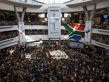 Johannesburg, South Africa: Thousands of South Africans screamed with joy, danced and sang at OR Tambo airport near Johannesburg on Tuesday as the Springboks who won the Rugby World Cup returned home. Forward Pieter-Steph du Toit, voted World Rugby Player of the Year two days ago, and scrum-half Faf de Klerk were among the first to arrive. [caption id=“attachment_7609841” align=“alignleft” width=“380”]  Springbok fans gathered in huge number as they wait for the South African Rugby team’s arrival after winning the World Cup in Japan. AFP[/caption] Nearly four hours later, the star attractions, captain Siya Kolisi and coach Rassie Erasmus, touched down to a frenzied reception. The victorious squad, coaches and officials were scheduled to arrive between Tuesday and Wednesday as no airline could accommodate the entire group on one flight. “We are privileged to do what we are doing … we know that can give a little bit of hope to the people,” Kolisi told a packed media conference. “We won because we wanted it a lot. The people here gave us another reason to want it even harder. We had our people with us and it was really special for us.” Erasmus, who celebrated his 47th birthday on Tuesday, said: “What we want to keep on lasting is what we’re seeing here at the airport (racial unity). “We have to focus on making sure that everybody gets equal chances of playing, everybody gets good nutrition and everybody gets a fair chance. “There are so many things that we have to fix, we can’t just focus on the Springboks. There are so many bigger things that we have to fix.” A carnival atmosphere enveloped the normally sedate international arrivals section of the airport as every Springbok received deafening applause. Black and white, male and female, young, middle aged and old, low-income earners and the wealthy all descended on the airport east of Johannesburg to salute their heroes. Many wore replica green and gold shirts and waved national flags as they celebrated the rugby triumph, which was all the sweeter after poor recent results by the national football and cricket teams.
