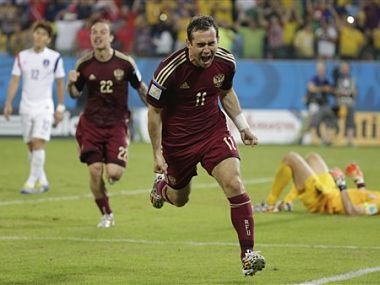 Alexander Kerzhakov scored with one of his first touches after coming on as a substitute to earn Russia a 1-1 draw with South Korea on Tuesday in a World Cup match marked by the first big goalkeeping error of the tournament. Russia goalkeeper Igor Akinfeev spilled Lee Keun-ho’s speculative long-range shot into his own net to gift South Korea a 68th-minute lead at the Arena Pantanal in Cuiaba in Group H. But Kerzhakov bailed his teammate out, turning in a shot from close range in the 74th — three minutes after coming on as a substitute — to rescue a point for Russia in a poor-quality match. [caption id=“attachment_1575737” align=“alignleft” width=“380”]  Russia’s Alexander Kerzhakov celebrates after scoring his side’s first goal. AP[/caption] Akinfeev stayed on the ground inside his own net, head in his hands, after making his blunder, clearly embarrassed after dropping what was a routine save from a shot from about 30 yards. He was consoled by a couple of teammates, who patted him on the back, but could soon join in the celebrations when Kerzhakov equalized soon after. The explosive six-minute spell that featured both goals was not in keeping with the rest of a fairly mundane game characterized by slow build-up play, poor passing and wayward finishing. A point leaves both teams behind Belgium, which beat Algeria 2-1 earlier Tuesday, but the group appears wide open based on the opening two fixtures. Having lost four of its last five games heading to Brazil, the South Koreans came into their eighth straight World Cup with concerns over their flimsy defense and a lack of goal threat. A 4-0 thrashing by Ghana in a warm-up in Miami last week highlighted those worrying deficiencies perfectly. Defensively, they weren’t too bad against Russia but there was no hiding their toothless attack going forward, with the experienced Park Chu-young starting as the lone striker but justifying fears that he has lost his way after three ineffective years with Arsenal in the English Premier League. He was substituted in the 56th. Russia, led by former England coach Fabio Capello, was just as lifeless in attack — at least until Kerzhakov and Alan Dzagoev came off the bench — and a dire first half was marked by the large contingent of Brazilian fans in the crowd doing slow hand clapping. Save for a shot by Son Heung-min that flew over the bar in the 39th when the forward was free at the edge of the area, there was barely a chance created in the first half. Capello stood with his hands on his hips in the technical area throughout the first 45 minutes, looking distinctly unimpressed. There was a major improvement after the break, although it required the mistake by Akinfeev to really get the game going. However, South Korea couldn’t hold on and when Dzagoev’s cross-shot was spilled out by goalkeeper Jung Sung-ryong and Hwang Seok-ho’s clearance went straight at Andrei Yeshchenko, Kerzhakov was on hand to bundle home from inside the six-yard box. AP
