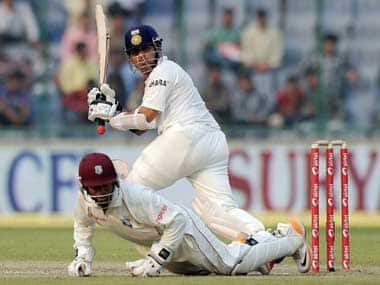 Sachin Tendulkar, the first and the only player in Test Cricket history to score fifty centuries, and the first to score fifty centuries in all international cricket combined has reached the target that he’d set for himself in 2009; scoring 15, 000 runs in Test cricket. In an interview with the Wisden Cricketer he had said, “I am not pleased yet with what I have done. Sunil Gavaskar has told me that I have to get to 15,000 runs. He said he would be angry with me and would come and catch me if I didn’t. I admire him so much and to score that many would be a terrific achievement, but that is not the only aim.” [caption id=“attachment_126300” align=“alignleft” width=“380” caption=“Sachin Tendulkar gets to his 15,000th Test run. AFP”]  [/caption] He scored 15, 000 runs while playing against West Indies at the Feroz Shah kotla grounds in New Delhi. Sachin is the first player to reach 12,000-13,000-14,000 Test runs, and now the highest test run scorer in the history of test cricket. He scored 15,000 runs in 300 test innings at an average run rate of 56.18 runs per over. Playing in his 182nd match, Tendulkar reached the mark on the third day of the first cricket Test against the West Indies when he scored his 28th run in India’s second innings with a single off leg-spinner Devendra Bishoo. After crossing the coveted milestone, the batting maestro looked up at the heavens and acknowledged the standing ovation given by his teammates from the dressing room as his partner Rahul Dravid congratulated him. The West Indian players also came up after the completion of the over to congratulate the iconic batsman. Tendulkar was 35 runs short of 15,000 before this match and he scored seven in the first innings before being adjidged leg-before off Fidel Edwards. India is playing against West Indies in a tense game and will need to bat well to gain an edge over West Indies when India takes the field on Day 4.