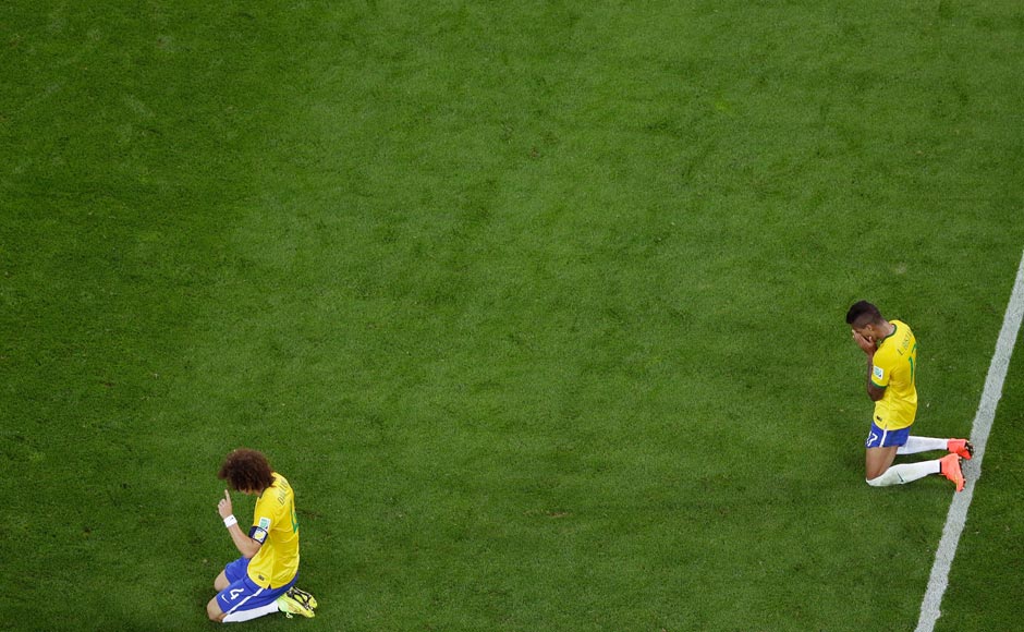 David Luiz (L) and Luiz Gustavo of Brazil react after being defeated by Germany 7-1 during the 2014 FIFA World Cup Brazil Semi Final match between Brazil and Germany at Estadio Mineirao on July 8, 2014 in Belo Horizonte, Brazil. Getty Images