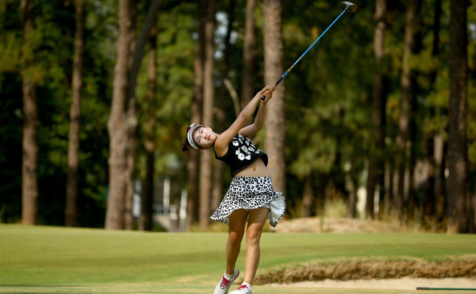 Record-breaking 11-year old Amateur Lucy Li of the United States hits a tee shot on the 18th hole during the second round of the 69th U.S. Women’s Open at Pinehurst Resort & Country Club, Course No. 2 on June 20, 2014 in Pinehurst, North Carolina. Getty Images