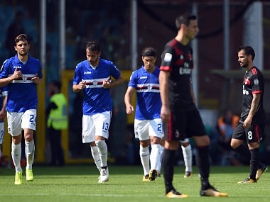 Milan: Duvan Zapata and Ricky Alvarez scored as Sampdoria condemned big-spending AC Milan to their second defeat of the Serie A campaign 2-0 in Genoa on Sunday. Zapata broke through after a terrible clearance by his cousin and fellow Colombia international Cristian Zapata after 72 minutes with substitute Alvarez getting the second just before the whistle. [caption id=“attachment_4077369” align=“alignleft” width=“380”]  Sampdoria’s players react after scoring a goal during their match against AC Milan. AFP[/caption] Chinese-owned Milan again showed their difficulty against teams in the top half of the table as they stay fifth after six games with Sampdoria, who have a game in hand, moving sixth just a point behind. “We deserved this victory, we fought to the end and must build on this performance,” said Zapata. “It’s important for us to keep a clean sheet too, now we need to rest and prepare for another important match.” Milan had problems defensively with Cristian Zapata having a forgettable afternoon and Leonardo Bonucci and Alessio Romagnoli performing little better. Sampdoria dominated from the outset with the visitors having a scare after two minutes when Ivan Strinic’s cross hit Franck Kessie on the arm and the referee awarded a penalty. However, the decision was overturned by the video assistant referee. After Saturday’s victories of leaders Juventus and Napoli, Sunday’s action will be dominated by the clash between Inter Milan, in third, and struggling Genoa, which would allow Inter to stay within two points of the leaders. Paulo Dybala scored a double as Juventus outclassed 10-man Torino 4-0 in the Turin derby to stay top of Serie A alongside Napoli who battled past SPAL 3-2. The Argentine striker has now scored an impressive ten goals in six Serie A games with Miralem Pjanic and Alex Sandro also on target at the Allianz Stadium. AS Roma cruised past Udinese 3-1.