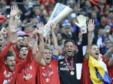 WARSAW, Poland: Sevilla won the Europa League for a record fourth time, with two goals from Carlos Bacca steering the Spanish club to a 3-2 win over Ukraine’s Dnipro Dnipropetrovsk in Wednesday’s final. The final whistle prompted tearful celebrations from Sevilla, which retained the title it won last season and earned a spot in next year’s Champions League, a prize offered this season to the Europa League winner by UEFA for the first time. “We want to be ambitious in terms of moving forward,” Sevilla coach Unai Emery said. “Obviously we want more but we now have more because we have the Champions League and we will enjoy that fully.” [caption id=“attachment_2266940” align=“alignleft” width=“380”]