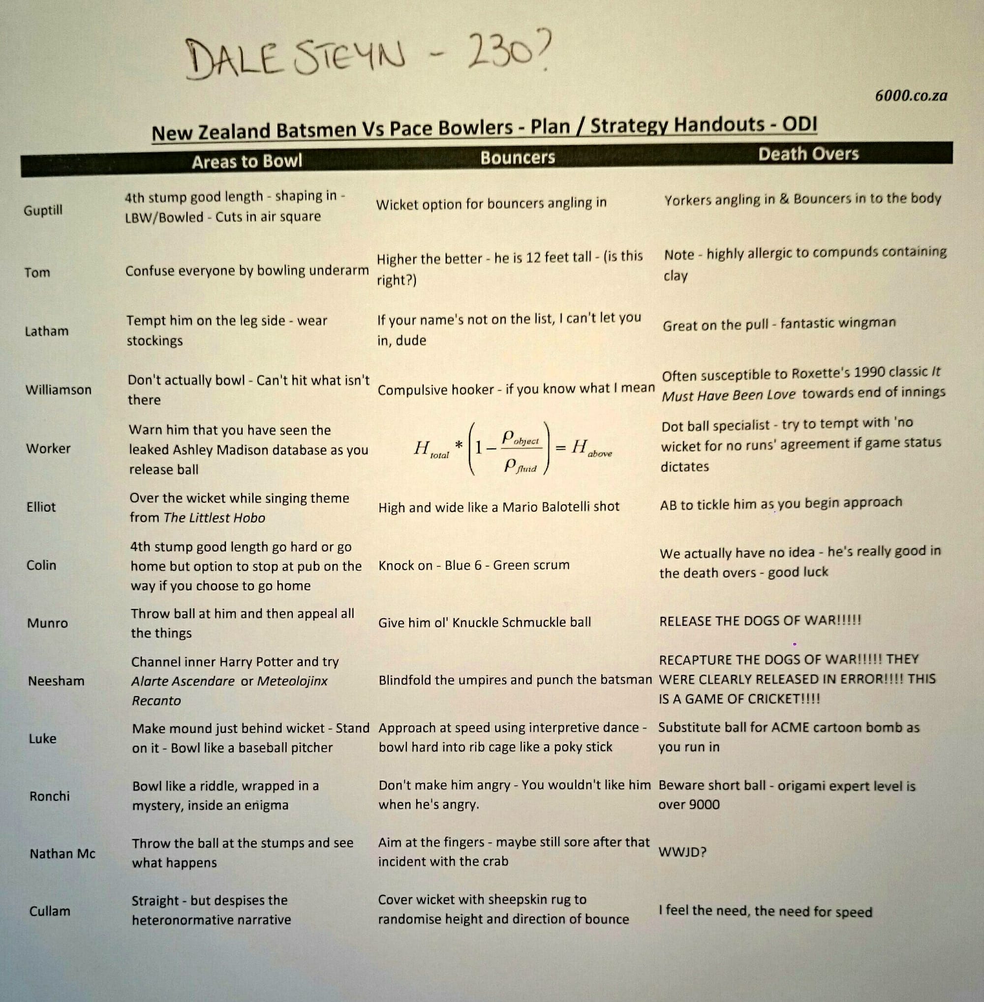 The dossier was meant to be sent to South Africa pacer Dale Steyn but it was accidentally slipped under the door of a hotel guest who decided to have some fun and posted it on Facebook.