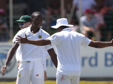 Port Elizabeth: Kagiso Rabada made two crucial breakthroughs as South Africa chipped away at a stubborn Sri Lankan batting order on the fourth day of the first Test at St George’s Park on Thursday. Sri Lanka were 240 for five at the close of play, with their last two recognised batsmen at the crease, after being set to make an improbable 488 to win. Rabada twice dismissed set batsmen, on both occasions with the second ball of a new spell. [caption id=“attachment_3180090” align=“alignleft” width=“380”] South Africa’s Kagiso Rabada’s twin strikes have given South Africa the advantage in the Test match. AFP[/caption] He trapped Kaushal Silva leg before wicket for 48 with his second ball after tea. Then, late on a hot afternoon, he broke a 75-run partnership between captain Angelo Mathews and Kusal Mendis. A fast, short delivery bowled from around the wicket induced an involuntary ramp shot by Mendis, who was caught behind by wicketkeeper Quinton de Kock for 58. In contrast to the first innings, when they were bowled out for 205, with several batsmen playing poor strokes in seam-friendly conditions, South Africa had to work hard for their wickets on a pitch which had lost most of its earlier life. It took a moment of hesitation to break an opening stand of 87 between Dimuth Karunaratne and Silva, who defied the South African bowlers for 145 minutes before Karunaratne was run out for 43 in the 33rd over. Silva pushed a ball from left-arm spinner Keshav Maharaj into the covers and set off for a run. Both batsmen hesitated momentarily in mid-pitch, JP Duminy picked up and released the ball quickly to wicketkeeper De Kock, who broke the stumps with a diving Karunaratne just short of the crease. Two overs later Kusal Perera attempted an extravagant cut shot and was caught behind, also off Maharaj. Silva and Mendis saw Sri Lanka through to tea before Rabada’s first breakthrough was followed by a fine partnership between Mathews and Mendis, with the 21-year-old Mendis playing some impressive strokes, hitting nine fours in a 90-ball innings before falling to Rabada. Maharaj, who bowled 22 overs unchanged, had Dinesh Chandimal caught at mid-on, with the batsman charging down the wicket. He had been dropped by Stephen Cook at mid-off trying a similar shot five runs earlier. Mathews and Dhananjaya de Silva saw out the day, with De Silva surviving on review after being given out leg before to Kyle Abbott, bowling with the second new ball, two overs from the close. Earlier South African captain Faf du Plessis declared with his team on 406 for six in their second innings. He and De Kock added 55 runs in 10.5 overs on Thursday before De Kock missed a sweep against left-arm spinner Rangana Herath and was leg before wicket. De Kock made 69 off 86 balls and Du Plessis was unbeaten on 67, also made off 86 deliveries. The pair put on 129, a record sixth wicket partnership for South Africa against Sri Lanka. It was also the third century stand of an innings during which South Africa scored at an average of 4.47 runs an over.