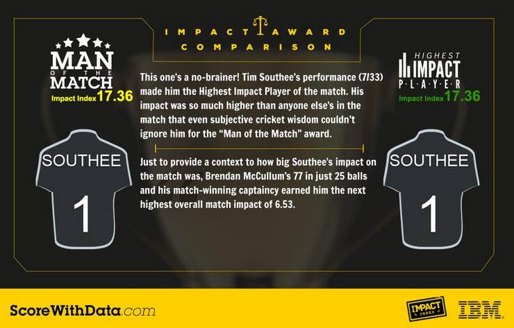 Paceman Tim Southee recorded the best one-day figures by a New Zealander while Brendon McCullum hit the fastest World Cup half-century to lead their team’s one-sided eight-wicket win over a hapless England on Friday. Southee took seven for 33 in his nine overs as England collapsed to 123 all out in just 33.2 overs. [caption id=“attachment_2110803” align=“alignleft” width=“359”]  Tim Southee celebrates after taking the wicket of Moeen Ali. Getty[/caption] New Zealand captain McCullum’s rollicking 25-ball 77 with seven sixes and eight fours at the top of the order then saw the tournament co-hosts romp to victory in just 12.2 overs of their reply in Wellington. When the umpires called for a dinner break with New Zealand needing just 12 more runs to win, jeers rang out around the packed 33,000 capacity Westpac Stadium. But although the amount of cricket played was under half the scheduled 100 overs of a one-day international, the crowd certainly got their money’s worth. Victory gave New Zealand, one of the tournament favourites, their third win in as many Pool A games while England were left with two defeats in two following a 111-run thrashing by Australia. Sensing an easy win, McCullum launched a ferocious attack on the England bowling, hitting Stuart Broad for a six off the first ball he faced. Fast bowler Steven Finn was not spared as McCullum hit six, four, four and six off the Middlesex paceman’s first four balls and then another six to bring up his fifty off just 18 balls. McCullum held the previous record for the fastest World Cup fifty, off 20 balls against Canada at St Lucia in 2007. Finn’s two wicketless overs cost a whopping 49 runs Chis Woakes ended McCullum’s knock by bowling him off a bottom edge. South Africa’s AB de Villiers holds the record for the fastest-ever one-day international fifty, off just 16 balls, made against the West Indies last month. Earlier it was Southee who left England clueless after Eoin Morgan won the toss and batted on a flat looking pitch. Southee achieved the third-best figures in all World Cups and beat the previous best by a New Zealander in all ODIs, recorded by Shane Bond, now the team’s bowling coach, who took six for 19 against India at Bulawayo in 2005. Only Joe Root, last man out in the 34th over, offered resistance with 46 while opener Moeen Ali made 20 and Morgan managed 17 in an otherwise disappointing batting display. “It’s a bit of a blur at the moment,” said Southee during the change of innings. “We’re good swing bowlers and, although we lost the toss, the ball swung throughout the innings. “They say that when there’s a bit of blue sky in Wellington, the ball swings.” England were looking at a revival at 103 for three with Morgan and Root at the crease. But former Ireland left-hander Morgan, who had managed just two runs with four ducks in his previous five innings, holed out at long-on off Vettori. He was left to rue his shot as England lost their last seven wickets for just 19 runs. Openers Ian Bell (eight) and Moeen Ali (20) were both bowled by Southee, who subsequently dismissed James Taylor (nought), Jos Buttler (three), Chris Woakes (one), Stuart Broad (four) and Steven Finn (nought). He took his final five wickets in the space of just 18 balls to record the third best figures in all World Cups behind the Australian duo of Glenn McGrath (7-15) and Andy Bichel (7-20). AFP  Follow @ScoreWithData for more stats and analysis