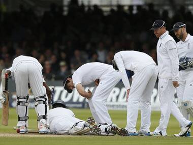 Number 11 Nuwan Pradeep survived five dramatic balls from Stuart Broad to help Sri Lanka avoid defeat after James Anderson ripped through the visitors to almost force an England win in the first test at Lord’s on Monday. Pradeep negotiated the final five deliveries, including successfully reviewing an lbw decision on the penultimate ball and edging the last just short of slip, to seal the draw as Sri Lanka finished on 201 for nine ahead of the second and final test starting on Friday in Leeds. “When you get so close and then you get the decision that wins you the test overturned, it’s hard to take, and that last nick,” England captain Alastair Cook told a news conference. “But that’s what test match cricket is about, going all the way down to the wire, both sides leaving everything out there.” [caption id=“attachment_1573741” align=“alignleft” width=“380”]  Pradeep negotiated the final five deliveries, including successfully reviewing an lbw decision on the penultimate ball and edging the last just short of slip. AP[/caption] Anderson had got rid of Mahela Jayawardene (18), Kumar Sangakkara (61) and Lahiru Thirimanne (2) in the space of 14 balls either side of tea, before returning with the new ball to remove captain and last recognised batman Angelo Mathews (18). Cook had set Sri Lanka 390 to win in 90 overs after declaring England’s second innings on their overnight score of 267 for eight, although taking 10 wickets on a lifeless wicket was always going to be a tall order for his four-strong seam attack. While they could not quite get the job done, the performance, which included centuries by Joe Root and Gary Ballance, will give hope to an England side looking to move on from the controversial end to Kevin Pietersen’s international career and the 5-0 Ashes thrashing in Australia. “I think we’ve made quite a lot of the running in this test match, to lose the toss and be put in and get 580 you give yourself a great chance in the game,” Cook added. “We were ahead in the game a lot, we can take a lot from that, we scored at a really good rate, a lot of the guys can take a lot of credit for that.” Sri Lanka had half an eye on an outrageous attempt to win the match and made steady progress in their second innings, losing opener Dimuth Karunaratne for 16 before lunch. Sangakkara and Kaushal Silva put on 98 for the second wicket before the latter fell for 57, his second half-century of the match. SOLID BASE The diminutive Silva held his nerve in the face of some well directed bouncers from Liam Plunkett to add to his first-innings 63, before gloving Chris Jordan through to keeper Matt Prior down the leg side. Jayawardene also came in for a short-pitched examination from Plunkett but eventually went to Anderson as he feathered an edge through to Prior, leaving the tourists 266 behind at tea with seven wickets left. With 34 overs left in the test, Sri Lanka were looking towards Sangakkara to provide a solid base, but Anderson had other ideas. After passing 50 for the sixth straight innings and becoming the seventh top run scorer in tests, Sangakkara chopped the ball onto his stumps from Anderson in the third over after the interval. Thirimanne, who failed to look at ease in his two appearances at the crease, edged Anderson to Jordan in the slips four balls later to raise home hopes of an amazing end to the test. The visitors were teetering at 170 for five, but captain Mathews and wicketkeeper Prasanna Jayawardene, who may be ruled out of the second test due to bruising on his hand, resisted the fired-up English attack for just over 20 overs, taking a number of blows to the body in the process. The put on 24 runs in 121 balls before Prasanna went lbw to Jordan and then Nuwan Kulasekara fell in similar fashion to Broad soon afterwards. Mathews later edged to Cook in the slips to give Anderson his fourth wicket of a remarkable effort and the Lord’s crowd suddenly believed a famous victory could be in sight. Broad dismissed Rangana Herath with the first ball of the final over, although the batsman looked to have taken his hand off the bat handle, but Pradeep survived the final five deliveries to avoid any wrangling. “All he said to me was don’t worry I’m going to hold on,” Sri Lanka captain Mathews said of Pradeep, who took a nasty blow on the shoulder in the first innings. “It was a good effort at the end, but after tea we were not really relaxed,” he admitted. Reuters