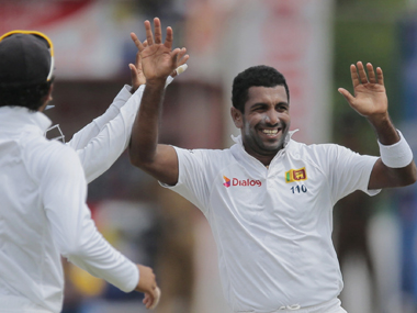 Colombo: India pacer Ishant Sharma claimed an impressive five-wicket haul, but Sri Lankan bowlers struck back to leave the visitors struggling in their second innings as rain forced early stumps on Day 3 of the third cricket Test at the Sinhalese Sports Club (SSC) here on Sunday. Ishant returned figures of 5/54, as the hosts were bundled out for 201, in reply to India’s first innings total of 312. Stuart Binny (2-24), Amit Mishra (2-25) and Umesh Yadav (1-64) also bowled superbly. In India’s second innings, Rohit Sharma (14 not out) and skipper Virat Kohli (1 not out) remained unbeaten at stumps as the visitors struggled to post a meagre 21/3. The visitors had a vital 132-run second innings lead at the end of the day’s play. [caption id=“attachment_2414176” align=“alignleft” width=“380”]  File picture of Dhammika Prasad. AP[/caption] With the SSC pitch offering appreciable lateral movement, Indian pacers struck early blows to reduce the hosts to 47/5 at lunch. Following the break, Ishant continued his rampaging form as he had Lahiru Thirimanne (0) caught at first slip before forcing Dhammika Prasad to retire hurt with a blow on his left hand. However, a 79-run partnership between Perera and Herath got the hosts back on track and although Perera departed before tea, Herath ensured that Sri Lanka did not stare at a big deficit. Starting their second innings with a 111-run lead, the visitors were on the backfoot right away when Dhammika Prasad dislodged Cheteshwar Pujara’s middle stump with an incoming delivery. Pujara, who carried his bat through India’s first innings, became the only man to follow such a feat with a duck in the same Test. Lokesh Rahul soon followed Pujara back to the dressing room when he misread another incoming delivery from pacer Nuwan Pradeep. The opener attempted to leave the ball only to see his bails go flying all over. Pradeep then trapped Ajinkya Rahane leg before as the Lankans clawed their way back into the match. At the close, Pradeep had figures of 2/6 while Prasad had clinched one wicket for eight runs. Earlier in the day, resuming the third day’s play at 292/8 in the first innings, the Indians managed to add only 20 runs to their overnight score. Opener Pujara remained unbeaten on 145 as India were bowled out for 312 in 100.1 overs in their first innings. For the hosts, Prasad (4/100) and Herath (3/84) were the pick of the bowlers. In reply, the Lankan batsmen looked in poor shape right from the start, losing wickets at regular intervals. The hosts lost their first six wickets for only 47 runs, thus putting their team on the back foot right at the start. But Kausal Perera (55) and Rangana Herath (49) got together to put on a 80-run stand for the seventh wicket to take the Lankans past the 100-run mark. With the dismissal of Perera, Herath took on the responsibility to keep the scoreboard ticking and take his team past to the 180-run mark. But Indian bowlers showed their class to knock down the rest in style. Alongside Ishant’s five-wicket haul, Binny, Mishra and Yadav bowled superbly to wreck the host’s batting order. India batsmen resumed play in the second innings, but to their surprise Lankan bowlers struck in quick succession to bring down the visitors’ first three wickets with just seven runs on the board. Incoming batsmen skipper Kohli and Rohit held on as heavy rains forced early stumps on day 3, giving India a vital 132-run lead in their second innings. IANS