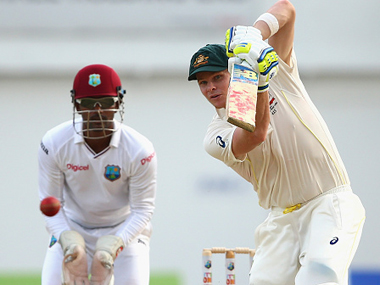 Jamaica: Steve Smith continued his sizzling form with an unbeaten century as Australia laid a strong foundation on the first day of the second test against West Indies in Jamaica on Thursday. Smith, who batted for almost the entire day after entering the fray in the first over, was unconquered on 135 at stumps as Australia advanced to 258 for four at Sabina Park in Kingston. [caption id=“attachment_2293050” align=“alignleft” width=“380”] Steve Smith carried on his brilliant test form with a crucial century at Kingston. Getty Images[/caption] On a day when West Indies fast bowler Jerome Taylor was superb, Smith weathered the early storm and faced 278 balls while patiently compiling his runs with a variety of shots on both sides of the wicket. It was the ninth test century for Australia’s test captain-elect and his fifth in his last six tests. “Early on it wasn’t too easy,” the 26-year-old said in a pitchside interview. “The ball was swinging around a little bit, a bit of seam on it. It was quite hard initially and then it got easier as the day went on.” Smith said there was no secret to his success, just lots of hard work and patience at the crease. “For the last 12 months I’ve been nice and patient and let the bowlers come to me and get in my areas where I want them to bowl and picked them off then. It worked well again today.” Smith rode his luck after reaching his century. He was dropped at first slip, had an lbw decision overturned on review, and survived a stumping appeal off the last ball of the day. Puzzlingly, West Indies captain Dinesh Ramdin did not take the new ball, giving Smith and Shane Watson (20 not out) the luxury of facing tame spin bowling for the final 10 overs of the day instead of the fire of Taylor. The day had started brightly for the West Indies when Taylor sent down six maiden overs in a sizzling morning session and claimed the scalps of Australian openers David Warner (0) and Shaun Marsh (11) with brilliant deliveries. Taylor finished the day with 3-18 off 15 outstanding overs. Australia captain Michael Clarke (47) was the third batsman dismissed, although he should have been on his way earlier after being caught on a no-ball when he had scored only three. Adam Voges, in just his second test, was the only other Australian to lose his wicket, caught behind for 37 off Taylor. Australia won the first match in the two-test series last week. REUTERS