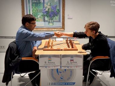 On the first day, Anand got off to a flying start winning both of his first two games. In round one, he played the lowest ranked player in the field, Danil Dubov. With the white pieces, Anand countered Dubov’s Sicilian Defence with the Rossolimo System. Dubov had come up with a new idea in the opening but Anand denied his opponent any counterplay. Dubov tried complicating the position but this only worsened his position. By the 19th move, the Russian GM had several pawn weaknesses and was obliged to shed a couple of pawns soon. With two extra pawns and a dominating position, Anand had no problems converting. [caption id=“attachment_4374585” align=“alignnone” width=“825”] Viswanathan Anand Anand during his first round game against Danil Dubov. Image Courtesy: Amruta Mokal, Chessbase India[/caption]