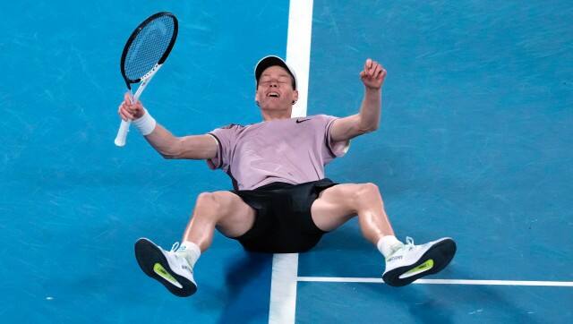 Sinner broke Medvedev’s serve in the seventh game of the second set. He was not being blown away anymore. Medvedev did double his advantage but a statement was made. “The match was going so fast the first two sets,” he told Channel 9. “I had zero chance to play at this level, but I was looking forward to having small chances. Somehow I managed to break him and tried to win one game at a time. And that’s it.” Unbeknownst to himself, that was the beginning of the comeback. Two hours later, the Italian collapsed on the court after slapping a big forehand winner that landed inches inside the baseline. He had just overturned a two set deficit to win his first Grand Slam title. [caption id=“attachment_13671492” align=“alignnone” width=“640”] Jannik Sinner holds the Norman Brookes Challenge Cup aloft after defeating Daniil Medvedev in Melbourne. AP[/caption] The World No 4 needed three hours and 44 minutes to