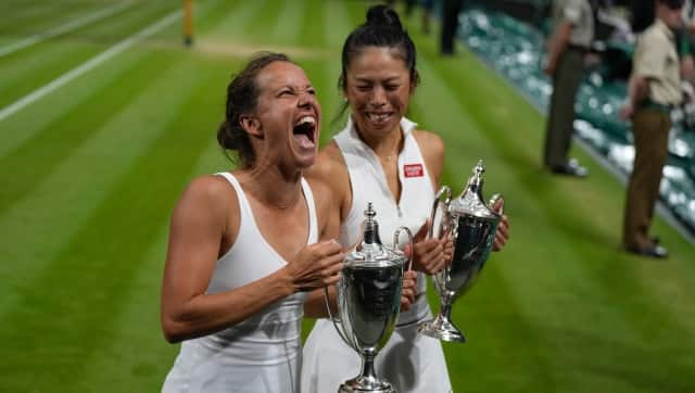 after beating Jannik Sinner. It appears 37 years old also means nothing anymore. Following the men’s final, the women’s doubles final took place on Centre Court. If the 36-year-old was defied by a 20-year-old, the 37 year olds in the women’s doubles could not be denied. Barbora Strycova, who had been off the tour for two years on maternity leave, and crafty Hsieh Su-wei, back from retirement, took another title. They had won this tournament as a team in 2019. Just a pity this was Strycova’s last appearance at Wimbledon. “It’s a great fairy tale because it’s my last Wimbledon playing ever, so I couldn’t ask for a better finish,” Strycova said. “I am so, so, so, so happy. Rain, slips and court mopping Heavy rain brought havoc to the schedule on the second day with just one hour’s play possible on the outside courts. It meant 69 of the planned 77 matches were suspended. The next day, 87 matches were put on the schedule!