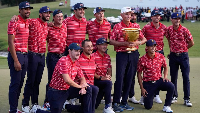 The United States won the Presidents Cup for a ninth consecutive time on Sunday with Tokyo Olympic champion Xander Schauffele delivering the clinching point in a 17.5-12.5 triumph over the Internationals. Schauffele never trailed in defeating Canada’s Corey Conners 1-up, sinking a three-foot par putt at the 18th hole to lift the US squad to 15.5 points and seal the overall triumph at Quail Hollow. “It feels good to win,” Schauffele said. “It got pretty close there for a little bit. Winning is winning.” The Americans, who led 11-7 entering the 12 final singles matches, improved to 12-1-1 in the all-time rivalry and have never lost on home soil. “They played great,” US captain Davis Love said. “It was hard. They put in a lot of effort the last three weeks. They came in ready to go.” Conners, winless for the week, missed a five-foot par putt at 17 to keep Schauffele 1-up. At 18, Schauffele dropped his third shot three feet from the hole and, after Conners missed his third from a bunker, rolled in the deciding putt to tie the hole, win the match and set off a US celebration. “I was handed the opportunity and I was able to take advantage of it,” Schauffele said. The Internationals couldn’t make the greatest last-day comeback in Presidents Cup history and haven’t lifted the trophy since 1998. “We’re a little disappointed,” Internationals captain Trevor Immelman said. “We believed in ourselves. “We had an amazing week. They were fighting. These guys have massive hearts. I’ll go into battle with them any day.” With 10 of the world’s 16 top-ranked players, the US team was a heavy favorite over a global side that lost British Open champion Cam Smith and several other top players who jumped from the PGA Tour to LIV Golf, making them ineligible. “Trevor and his guys did a great job of rising to the occasion,” Love said. Tony Finau won five of the last nine holes to defeat Canada’s Taylor Pendrith 3&1 and lift the Americans within a point of clinching the Cup. “I fought as hard as I’ve ever fought in a match,” Finau said. “You just have to get the job done.” Jordan Spieth, winless in seven prior Ryder and Presidents Cup singles matches, became only the sixth player to go 5-0 in a single Presidents Cup, winning four holes in a row late to defeat Australia’s Cam Davis 4&3 for the first US point. “I was extra nervous,” Spieth said. “I wanted to get that monkey off my back. They are looking for red on the board and it feels really good to finally provide that. “You can’t put a price on this. I did as much as I could this week.” Patrick Cantlay never trailed in beating Australia’s Adam Scott 3&2 for the second US point. Cantlay went 3-up after four holes and Scott, Cup-less in 10 tries, was never nearer than 2-down after that. Sam Burns finished the week winless but helped the US cause by tying Japan’s Hideki Matsuyama. Thomas, Scheffler lose The global stars pulled off two early upsets to delay the US party. South Korea’s Kim Si-woo beat Justin Thomas 1-up, the American falling to 0-3 in career Presidents Cup singles. Thomas, who went 4-0 with Spieth in pairs, lost after Kim sank a 10-foot birdie putt at 18 and Thomas missed his from three inches closer. “I believed I could do it and I did it,” Kim said. “I’ve never (felt) this pressure. Real hard match. I kept the pressure to him and kept positive and that’s why it worked.” Thomas won the 2017 PGA Championship at Quail Hollow and his second major at this year’s PGA. Colombian Sebastian Munoz beat top-ranked Scottie Scheffler 2&1, the Masters champion going 0-3-1 this week, worst mark of any world number one in a Presidents Cup. “It was tough,” Munoz said. “It was one of the best things I’ve ever achieved in my life. It took everything. I threw everything at him.” In post-clinch finishes, South Korea’s Im Sung-jae beat Cameron Young 1-up, Lee Kyoung-hoon downed Billy Horschel 3&1, Max Homa beat South Korea’s Kim Joo-hyung 1-up, Collin Morikawa defeated Chile’s Mito Pereira 3&2 and South African Christiaan Bezuidenhout downed Kevin Kisner 2&1. Read all the Latest News , Trending News , Cricket News , Bollywood News , India News and Entertainment News here. Follow us on Facebook, Twitter and Instagram.