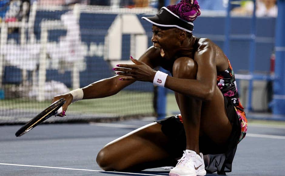 [caption id=“attachment_1068813” align=“alignleft” width=“940”]  Defending champion Andy Murray serves on his way to a 6-2, 6-4, 6-3 victory over Michael Llodra. AP[/caption] [caption id=“attachment_1068815” align=“alignleft” width=“940”]  Sloane Stephens reacts after her 6-1, 6-1 win over O. Radwanska. Dominating. AP[/caption] [caption id=“attachment_1068817” align=“alignleft” width=“940”]  While one woman from America was rejoicing, the other was wincing. Venus Williams took an ugly tumble during her match against Zheng Jie and also crashed out of the US Open, losing 3-6, 6-2, 6-7. Getty Images[/caption] [caption id=“attachment_1068819” align=“alignleft” width=“940”]  And another American won’t be seen on the court in action again. James Blake retired from professional tennis after his loss to Ivo Karlovic. He went down fighting, 6-7, 3-6, 6-4, 7-6, 6-7. Reuters[/caption] [caption id=“attachment_1068821” align=“alignleft” width=“940”]  Rain delayed a lot of matches at Flushing Meadows today. Organisers did their best to clear the courts. Getty Images[/caption] [caption id=“attachment_1068823” align=“alignleft” width=“940”]  The delay also affected Indian Somdev Devvarman’s match against Lukas Lacko. The Indian won 4-6, 6-1, 6-2, 4-6, 6-4. AP[/caption] [caption id=“attachment_1068827” align=“alignleft” width=“940”]  Even Juan Martin Del Potro has a frustrating evening. He was miffed at his opponent’s constant plea to get his knee treated, but eventually beat Garcia-Lopez 6-3, 6-7, 6-4, 7-6. Getty Images[/caption]