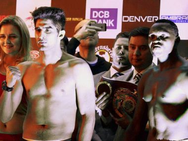 defeated Australian Kerry Hope in a gruelling 10-round contest in front of his home crowd at Thyagaraj Stadium in New Delhi to take his first professional title in July, has not faced much of a challenge in the seven pro bouts he has fought so far. The bout against Cheka, however, is expected to be an altogether different matter. [caption id=“attachment_3161102” align=“alignleft” width=“380”] Indian boxing star Vijender Singh and Francis Cheka. PTI[/caption] The Tanzanian, reigning World Boxing Federation (WBF) Super Middleweight champion, is a veteran at the professional level, having won 32 of his 43 bouts. Of those wins, 17 have come by knockout. The 34-year-old is also the current African champion in the International Boxing Federation (IBF) Super Middleweight division. Having made his debut as a 17-year-old in the year 2000, Cheka has over 16 years of experience in professional boxing, compared to just six months for Vijender. Vijender however, enjoys the height advantage over the 5'10" African boxer. At the pre-fight weigh-in on Friday, Vijender was an exact 76 kilograms while Cheka registered 74.7. Vijender has created several historic milestones for Indian boxing. The Haryana lad became the first Indian boxer to clinch an Olympic medal when he took bronze at the 2008 Beijing Olympics and the first to win a professional title. He will get the chance to create another milestone on Saturday evening. The evening will also feature five undercard bouts featuring upcoming Indian professional boxers. In the Welterweight (67kg) division, Pardeep Kharera will take on Scott Edwards of Australia while Deepak Tanwar will meet Indonesia’s Sutriyono Bara Boys. In the Lightweight (61kg) category, Kuldeep Dhanda will fight Egy Rozten of Indonesia and Rajesh Kumar will take on Ugandan pugilist Mubaraka Sseguya. Dharmender Grewal will challenge Abasi Kyobe of Uganda in the Cruiserweight (95kg) category. When and where to watch: Date: 17 December, 2016 Time: 7 pm IST onwards TV channel: Star Sports 1 and HD1 Online Streaming: The bout between Vijender Singh and Francis Cheka will be live streamed on