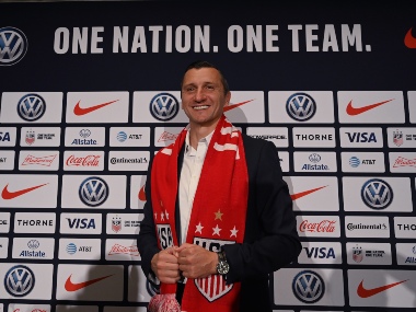 Vlatko Andonovski at the press conference announcing his appointment. AFP[/caption] Andonovski, a coach in the National Women’s Soccer League (NWSL), takes over from Jill Ellis who, after leading the team to a second back-to-back World Cup title in July, announced that she would step down. “Vlatko is known for his deep understanding of the game, his unmatched preparation and his tactical flexibility,” US Soccer president Carlos Cordeiro told reporters at a media conference announcing the appointment. “Frankly, I can’t imagine a more perfect match than this coach for this team at this moment in time.” The Macedonian-born Andonovski, 43, told reporters that qualifying for the Tokyo 2020 Olympic tournament was “first thing on the agenda” and that he would mix the team’s deep collection of veteran players in among new prospects. “We have a very experienced team — we have players that have been on the international stage, that have won big games, big tournaments, so we’re going to rely heavily on them, but that doesn’t mean we’re not going to expand the roster,” said Andonovski. A former player himself, Andonovski had served as a head coach in the NWSL since 2013, a stint that included two championships, in 2014 and 2015. Most recently, he coached Reign FC, working with current US national team member Megan Rapinoe, and taking the team to the league semi-finals, despite losing some players to injury and World Cup competition during the season. National team General Manager Kate Markgraf said she had spoken to current and former players during the selection process and that Andonovski’s coaching record “speaks for itself”. He joins the national team during a transformative year, months after the players filed a gender discrimination lawsuit against their governing body. Asked about the issue of gender pay equity, Andonovski said he was “very respectful of the drive, of the push that the players have”. The team sued US Soccer in March and now awaits a May 2020 trial date after mediation between the two parties fell apart in August.