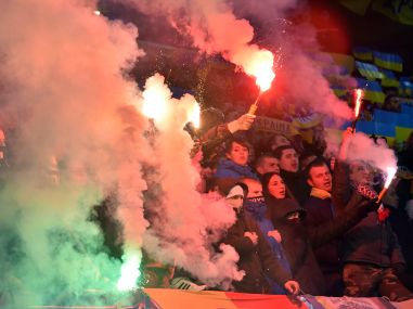 File photo of Ukraine fans reacting during a football match. AFP[/caption] But conflict and economic crisis has seen the powerful clubs lose funding and home venues are considered too dangerous for opposing sides to visit because of clashes in surrounding streets. “Everything is collapsing: top foreign players have gone and clubs’ budgets have been cut,” Ukrainian football analyst Artem Frankov told AFP. Russia’s annexation of the Crimea region in 2014 saw two of the Black Sea peninsula’s teams leave Ukraine’s top division – a move that upset UEFA, which barred them from joining the Russian championship. Meanwhile, Shakhtar Donetsk and a few other eastern teams have been forced to flee their grounds in rebel-held territories and play in Kiev or nationalist western Ukraine. This allowed them to continue taking part in European competitions, but home support was at times replaced by jeering crowds that rooted for the away team. The success of Shakhtar and Dnipro Dnipropetrovsk – surprise finalists of last year’s Europa League – was built around their purchase of stars from Brazil and other nations for huge sums. But security fears and budget cuts are seeing those players leave for far safer European countries. Brazilian Douglas Costa moved from Shaktar to Bayern Munich last year for an estimated $30 million. Ukrainian clubs now have to rely on homegrown, untested younger players. Hard times According to Ukraine’s Premier League, the past two years have seen the number of foreign top flight players dwindle from 170 to 60. This is reflected in performances on the pitch. Shakhtar – owned by Rinat Akhmetov, Ukraine’s richest tycoon – have also sold Brazilian top scorer Alex Teixeira to China’s Jiangsu Suning for 50 million euros ($55.5 million). The money has not been spent on new imports. The clubs need cash. “The days of teams’ full funding (by billionaires) are gone. It is now hard times for all,” Shakhtar’s chief executive Sergiy Palkin told Novoye Vremya weekly. Ukraine’s political turmoil and conflict have fanned an economic crisis that has thinned the wallets of tycoons like Akhmetov, who finance most Ukrainian clubs. The cut in funding has forced some of the smaller teams into bankruptcy protection and to drop out of the Premier League, which has shrunk to 14 from 16 clubs since 2014. But even those still competing suffer from financial turmoil. There have been player strikes over unpaid wages, which many in Ukraine believe were too high from the start. Perhaps the starkest example of the troubles is Dnipro, which less than a year after its stunning European performance faces possible expulsion from continental competition until 2019. Club president, banking magnate Igor Kolomoisky has refused to pay wages owed to Dnipro’s former Spanish manager Juande Ramos and his assistants. “Our clubs are fully dependent on their owners’ whims,” Frankov said. The decline in football quality has emptied once vibrant stadiums and seen fans switch off their TV sets. Average match attendance has halved to 6,000 from 12,000 since last year, according to Premier League chief Petro Ivanov. And those who do come out are often from hooligan fringes, some swearing allegiance to far-right groups renowned for racist behaviour. One infamous incident spotlighted by Ukrainian television showed Dynamo Kiev fans throw Nazi swastika-emblazoned smoke bombs onto the pitch. A group of Dynamo ultras also attacked local black fans during a Champions League home match against Chelsea. The team played its next group stage game before an empty stadium as punishment, which it won against Maccabi Tel Aviv. Analysts say the crises should prompt a reform of the league, with teams’ dependence on billionaires’ largess replaced by market principles. “We forgot that football, at least partially, has to feed itself,” Frankov said. “If Ukrainian football wants to survive, it must reform itself.” AFP