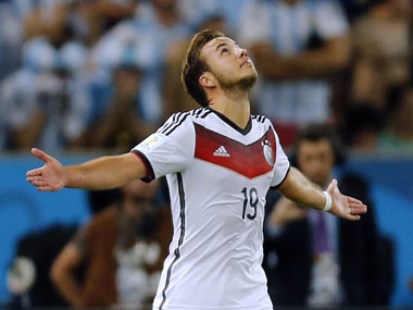 Mario Goetze displayed all his considerable talent in scoring the goal that ensured Germany became the first European team to win the World Cup title in South America. Goetze came off the bench and netted the winner in the 113th minute of the final against Argentina with a perfectly taken volley. [caption id=“attachment_1617437” align=“alignleft” width=“380”]  Goetze came off the bench and netted the winner in the 113th minute of the final against Argentina with a perfectly taken volley. AP[/caption] Andre Schuerrle, another substitute, broke away down the left flank and sent a cross into the penalty area. Goetze controlled the ball with his chest perfectly and then fired a left-foot volley from an acute angle inside the far post. https://twitter.com/FirstpostSports/status/488434541913067522 Goetze began the tournament in Germany’s starting lineup but was relegated to the bench when coach Joachim Loew decided to use his only true striker Miroslav Klose. Klose started Sunday before being replaced by Goetze. AP