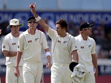 File picture of Trent Boult. Reuters[/caption] Bowling full and straight, Boult reduced West Indies from 175 for four to 188 for nine, having Marlon Samuels and Narsingh Deonarine caught behind the wicket and then bowling three of the tailenders. The visitors had resumed on 158 for four and began positively with Samuels and Deonarine scoring at a quick clip before Boult struck. He had Deonarine caught by Ross Taylor at first slip for 22, then had Samuels flailing at a full delivery that caught an inside edge and went to wicketkeeper BJ Watling for 60. Boult then ran through the West Indies tail, bowling Darren Sammy, Shane Shillingford and Tino Best all for ducks in a devastating spell to finish with career-best figures of 6-40. Tim Southee finished off the innings by bowling Shannon Gabriel for a duck. Reuters