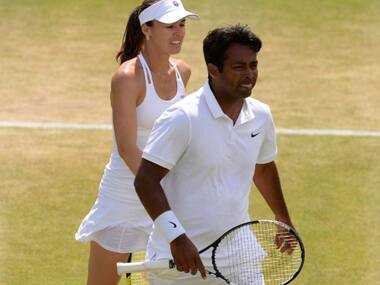 London, UK: India’s Leander Paes entered the semifinals of the mixed doubles event even as Sania Mirza-Bruno Soares pair crashed out in the quarterfinals at the Wimbledon on Thursday. While seventh seeded Paes and his Swiss partner Martina Hingis took little time to brush aside the challenge of unseeded Polish-Russian combination of Marcin Matkowski and Elina Vesnina 6-2 6-1 in just 44 minutes, second seeds Sania and Bruno Soares of Brazil were stunned 6-3 6-7(8) 7-9 by fifth seeds Alexander Peya of Austria and Timea Babos of Hungary in two hours and 21 minutes. [caption id=“attachment_2336588” align=“alignleft” width=“380”]  Leander Paes - Martina Hingis continued their winning run at Wimbledon but it was not a great day for Mirza and Bopanna. AFP[/caption] Paes amd Hingis will next face top seeded American pair of Mike Bryan and Bethanie Mattek-Sands in the semifinals. It was also curtains for India’s Rohan Bopanna’s whose bid to enter his maiden Wimbledon doubles final came to a disappointing end as he along with his Romanian partner Florin Mergea lost a marathon five-setter against fourth seeded Dutch-Romanian pair of Jean Julien-Rojer and Horia Tecau. Julien-Rojer and Tecau won 4-6 6-2 6-3 4-6 13-11 in a contest that went on for three hours and 23 minutes. For Bopanna, it was yet again a case of being so near yet so far after he lost another marathon five-setter semi-final back in 2013. Ironically, his partner was Julien-Rojer, who ended up on the winning side today. The final set turned out to be a battle of patience for both pairs as they held their respective services for 23 games. It was in the 24th game of the fifth set that the Indo-Romanian pair was broken and the match ended there. The match started with Bopanna being broken in the very first game but Mergea’s good returns saw them break back. The pair also broke Tecau to take the first set at 6-4. In the second set, it was the turn of the Dutch-Romanian pair to get a double break and win the set easily by 6-2 margin. The third set went nearly on similar lines as Bopanna-Mergea were broken once and lost the set at 3-6. Down 1-2, the Indo-Romanian pair came back strongly in the fourth set winning the coveted break and taking it at 6-4. However Bopanna despite his booming serves was not in his element as he made too many unforced errors both at the net and from the baseline. In all the pair committed 12 double faults including five in the fifth and final set. PTI