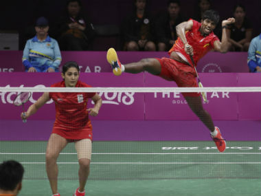 File image of mixed doubles pair Ashwini Ponnappa and Satwiksairaj Reddy. AP[/caption] “We ended up making lot of mistakes in the first game but we were surer in the second about our strategy. We are very happy that we could stay focussed and win,“Ashwini told reporters after the match. The World No 40 Indian pair has a tough task at hand on Friday when they face No 1 and top-seeded Chinese pair of Zheng Siwei and Huang Yaqiong. It was an even battle in the opening game as the Malaysian pair managed an 11-8 lead at the break and though Ashwini and Satwik clawed back at 14-14 and even held a slender 18-16 lead at one stage, their rivals were more composed and pocketed the game. In the second game, Goh and Shevon opened up a 5-2 lead but this time Ashwini and Satwik drew parity at 9-9 and then broke off to comfortably bounce back into the contest. In the decider, the Indian pair was simply brilliant as it aggressively dominated the proceedings. They led 11-4 at the interval and continued in the same vein after the breather to storm into the quarters. “We will give our best. We will come all guns blazing. But we can’t think too far ahead (about the medal), so the focus is on tomorrow’s match,” Ashwini said.