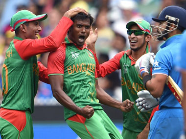 In their fifth World Cup, Bangladesh made their first knockout game. They have had some success in the past, getting through to the “Super 8s” in the ridiculously long winded 2007 tournament. However, this is the first time the Tigers of Bangladesh have played in a World Cup game that was winner takes all. There is an argument to be make about this being the biggest game in their history, it is certainly the most important they have played since they were granted Test status back in 2000. In the build up to this game, the Bangladesh players were keen to point out that they were under no pressure. No one gave them a chance and as a result they were laid back about the game. “The group stage was more important for us because we knew that we have to go through because back home the people are expecting we can beat some bigger sides,” Mashrafe Mortaza told the media. “That was more pressure, I think. For [this game], the boys are very relaxed.” [caption id=“attachment_2163005” align=“alignleft” width=“380”]  In the build up to this game, the Bangladesh players were keen to point out that they were under no pressure. AFP[/caption] The match began in the way that we would have expected. India’s openers put together a decent opening stand, finding the boundary but also rotating the strike. While there were no real drama, the Bangladesh bowlers kept it reasonably tight. There was never a point during the first 30 overs of the Indian innings where you thought the current World Champions were running away with things. Certainly when Shakib-al-Hasan spun one past the edge of Shikhar Dhawan’s bat to have him stumped, there was a feeling that Bangladesh were in this game. When Virat Kohli departed in the next over the game was very much in the balance, before this game he was averaging 124 against these opponents. When Ajinkya Rahane was out trying to loft the ball over cover for a scratchy 19, Bangladesh were a couple of wicket taking deliveries away from taking control of the match. Taskin Ahmed was consistently finding his yorker length, Rubel Hossain was generating decent pace, Shakib was keeping it tight. When the second set of drinks were taken India were 132-3 and losing their way. Mortaza brought himself back on to bowl, and has he has so often in this World Cup he served up a couple of half volleys as his creaky knees got warmed up. As against England, his second over of the spell was much better, and second ball swung back into Suresh Raina striking him on the pads. An appeal was turned down and on review it was shown to be pitching marginally outside leg stump. If seemed as if Bangladesh felt that with that millimetre of difference, their chances in this match had gone. The fielding got ragged; the bowling was not as accurate. The Indians had executed their game plan perfectly. They had two set batsmen going into the death overs and wickets in hand so that they could attack. Bangladesh were further aggrieved when Rohit Sharma, on 90, was adjusted caught off a delivery the umpires decided was full toss above waist height, and therefore a no-ball. But by then, their chances restricting India to a total that they could chase was gone. Rohit made another 47 runs, but even if he had been dismissed, he had done his job. Bangladesh were set the task of chasing 303 against a bowling attack that had taken all 60 wickets in six games. In previous tournaments, it has been the Indian batting that has impressed; in this World Cup, it has been the seam bowling of Mohammad Shami, Umesh Yadav and Mohit Sharma that have been turning heads. By the end of this game they had made that 70 wickets out of 70, a seventh win and a seventh time their opponents were all out. Bangladesh started well enough, with Tamim Iqbal hitting Shami for three fours in an over to get him going. The issue was always going to be keeping up with the rate while keeping wickets intact. Right from the start it was clear that doing both was too much to expect from the Tigers. They were dismissed for 193, 110 runs short of a target that was always beyond them. As they leave the World Cup, this Bangladesh side will do so with a huge number of positives. Taskin Ahmed has been a revelation and has blossomed on the biggest stage. Mahmudullah’s back-to-back hundreds were innings of maturity and class. Rubel Hossain has managed to back up his decent form over the last 18 months with spells of pace and aggression in this tournament. Mushfiqur Rahim and Shakib had decent returns that you would expect from Bangladesh’s best two players. For the first time in a long time, Bangladesh will walk away without their pride in tatters and their place at the Full Member table not up for debate. As things stand Bangladesh will be fighting it out with Zimbabwe and the top Associates to make the next World Cup. On this showing, they are more deserving of a place than others in the Full Member club, But the way the ranking system works, it is unlikely they will move into the top eight ahead of the 2018 qualification cut off. If they were to fail to make the next World Cup, the tournament would be poorer without them.