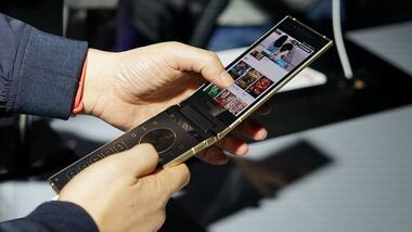 Samsung Galaxy W2019 flip phone listed on TENNA, seen sporting two AMOLED screens