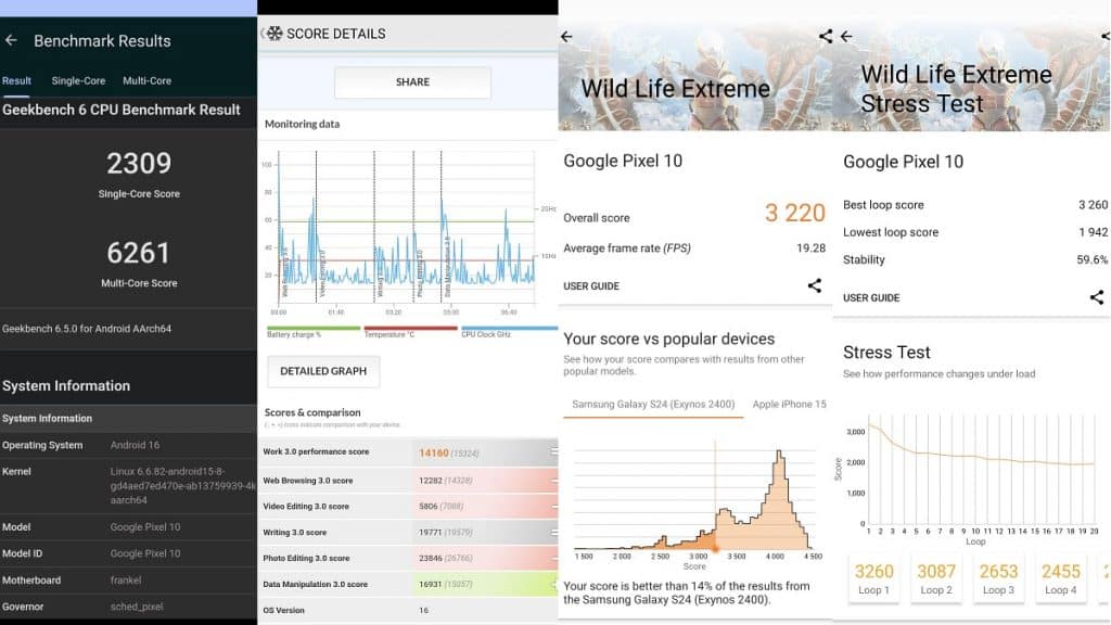 Google Pixel 10 Hardware and performance: A notable jump in performance despite the throttling