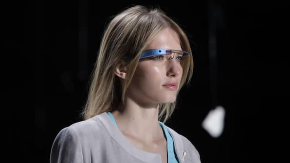 A model wearing Google Glasses at the Diane von Furstenberg Spring/Summer 2013 collection show during New York Fashion Week. Reuters