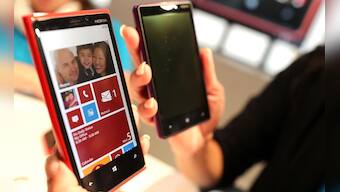 The new Nokia Lumia 920 (L) and 820 Windows smartphones are displayed during a joint event with Microsoft. Getty Images.