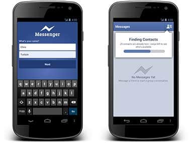 So yes, the sheer numbers as far as Android is concerned show that Facebook is right about tapping into Android users first, rather than going after Apple users. [caption id=“attachment_547825” align=“alignleft” width=“380”]  Facebook’s Messenger App for Android. Image from Facebook.[/caption] Spreading the Facebook brand: The Messenger app now requires just your name and your mobile number. Facebook might have one billion users but it has no intention of stopping there. In terms of numbers, India is one of Facebook’s largest growing markets and there are currently 60 million Indians on Facebook. That’s about half of India’s active Internet population ( which is currently at around 137 million and growing). China might have over 500 million Internet users, but until the great censorship wall of China comes down, India is one of the best bets for Facebook as far as growing users are concerned. ComScore data shows social networking accounted for 25.2 percent of all time-spent online in June 2012 as far as Indians are concerned. Facebook is also the second most popular site accessed after Google, according to the research. The updated Messenger app means Facebook wants users in India and other upcoming markets to go beyond social networking, and into messaging but via their app. Urban India might have a Facebook account but the Messaging App is still not very popular. On Android, Facebook’s Messenger App is ranked 14 as far as top free apps are concerned. By asking users to sign into the app with only names and mobile numbers, Facebook is looking for more users, and this time its starting with messaging. Rivalry with WhatsApp: WhatsApp is currently the Number One Top free app on Android and it’s clear that for Facebook this is the biggest rival. WhatsApp is free for the first year but users have to pay for subscription from the second year. What is interesting however is the WhatsApp has now made it to feature phones with Internet capabilities such as Nokia Asha 201 and Nokia Asha 306 which are still some of the cheapest phones in the Indian market. Facebook too is available on such phones but the Messenger app also needs to get into this segment if it wants to compete with WhatsApp seriously. However the advantage that Facebook’s Messenger has over Whatsapp is that it’s free. And like WhatsApp it allows users to send Photos. It does not however allow users to send videos yet. Once it does, it could have a significant edge, given that the Facebook brand is so large and growing all the time. Mobile is where Facebook is placing all its bets for the future and the Messenger upgrade is part of this strategy.