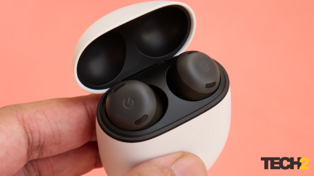 Image Credit: Tech2 | Ameya Dalvi[/caption] The case feels premium courtesy of its smooth white matte finish. You only get the Charcoal black variant of the product here, which means, you will have to make do with the black and white combo; no complaints about that. The compact case is fairly pocketable. It has a camouflaged charge indicator LED at the front, a Bluetooth pairing button back and a USB-C charging port at the bottom. The earbuds weigh 6.2 grams each, while the charging case tilts the scale at 50 grams. Not the lightest but they don’t feel heavy either, thanks to the even weight distribution. The earbuds are IPX4 rated for sweat resistance and can be worn during workouts or jogs. Avoid using them in a drizzle though. The case has an IPX2 rating which makes it partially water-resistant from certain angles. Best to keep it away from splashes and sprays. Google Pixel Buds Pro: Features and specifications (7.5/10) Each earbud is fitted with an 11 mm driver and three microphones. They also have wear detection sensors to pause the audio when you remove a bud from the ear, and resume when you put it back in. Being a Google product, there is tight integration with Google Assistant. You can issue hands-free voice commands to do certain tasks or control compatible smart devices in the house. They are quite responsive just like Google Nest smart speakers. [caption id=“attachment_11962892” align=“alignnone” width=“640”]