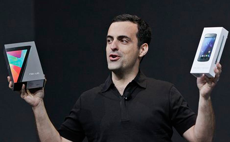 [caption id=“attachment_359898” align=“alignleft” width=“940” caption=“Hugo Barra, Director of Google Product Management, holds up a box of the Google Nexus 7 tablet, left, and the Galaxy Nexus phone, right, at the Google I/O conference. AP”]  [/caption]