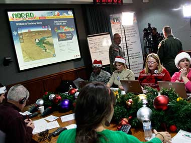 [caption id=“attachment_568403” align=“alignleft” width=“380”]  Volunteers take phone calls from children asking where Santa is and when he will deliver presents to their house, during the annual NORAD Tracks Santa Operation, at the North American Aerospace Defense Command.AP[/caption]
