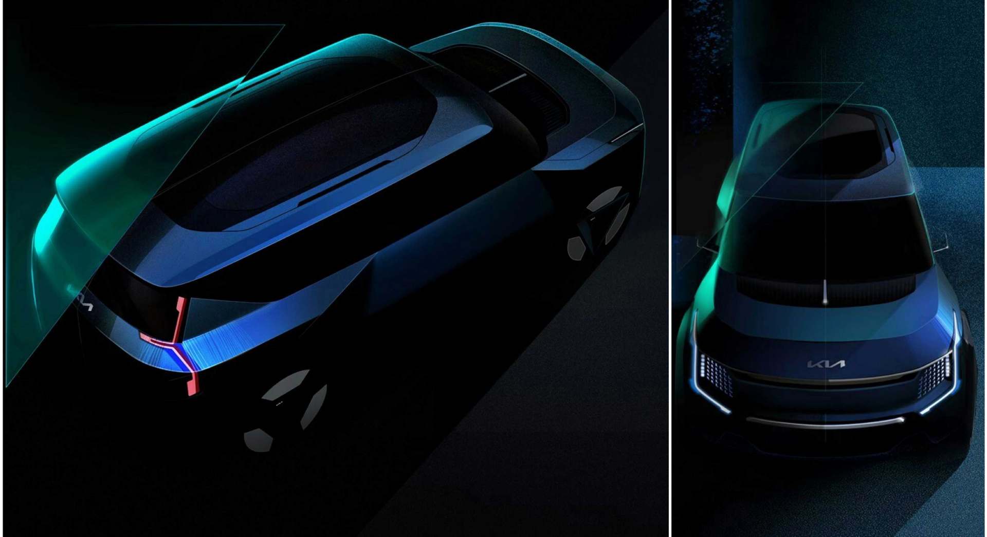 Ahead of its world premiere in the coming days, Kia has shared glimpses of its latest all-electric concept, the Kia EV9 SUV. Said to follow in the footsteps of the Kia EV6 crossover, the Kia EV9 – which will debut at the Los Angeles Auto Show on 17 November – is every bit the muscular, square-jawed SUV that the original teaser hinted at. While Kia has shared nothing more than a few shadowy images and design sketches, it’s clear that with the EV9, boxy is in. [caption id=“attachment_10128791” align=“alignnone” width=“1920”]  The Kia Concept EV9 previews the carmaker’s first all-electric SUV. Image: Kia[/caption] Said to be inspired by the ‘contrasts of nature’, the EV9, with its upright proportions, squared-off front-end and block-like body is in the mould of some iconic burly SUVs and will appeal to fans of this body style. It features slim, L-shaped LED lights up front, and next to them are tiny circular daytime running lights integrated into perforations in the otherwise sealed-off front-end. The EV9’s muscular wheel arches are visible, as are its blacked-out pillars (lending the ‘floating roof’ effect), its large glass roof and thin LED tail-lights. [caption id=“attachment_10128801” align=“alignnone” width=“1920”]  Note blacked-out pillars and large glass roof. Image: Kia[/caption] The design sketch of the EV9’s interior provides a look at the funky steering wheel and an ultra-wide screen that combines the digital driver display and the touchscreen infotainment system as the highlights in an otherwise minimalistic SUV. Karim Habib, head of design at Kia, spoke about using recycled fish nets for the EV9’s flooring, and its seat fabrics utilising recycled plastic bottles and wool fibre. The EV9 will only have vegan leather on the inside, and Habib even went on to say the company is working to phase out the use of leather in its vehicles going forward. [caption id=“attachment_10128821” align=“alignnone” width=“1552”]  Ultra-wide screen a highlight inside the otherwise minimalistic Kia EV9. Image: Kia[/caption] Kia has refrained from sharing any other details at this point, but by now, it’s clear the EV9 will be based on the same E-GMP architecture as the Hyundai Seven concept , which will also make its world premiere in LA on the same day. Like other models based on this platform, the production version of the Kia EV9 is likely to have a large lithium-ion battery (close to 100 kWh in capacity), single- and dual-motor options and a range of up to 500 kilometres on a full charge. Expect the production version of the Kia EV9 concept to debut sometime in 2023.