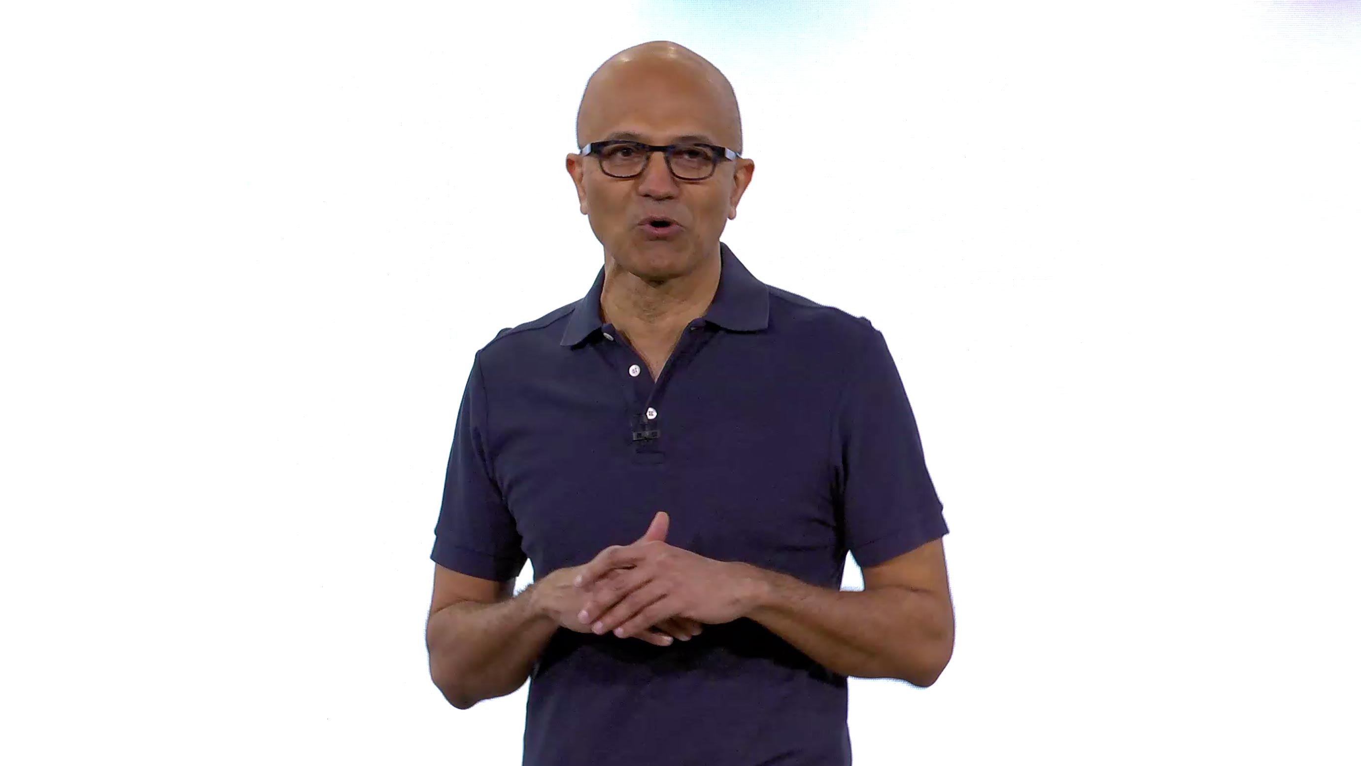 Microsoft CEO Satya Nadella is on stage to present the Vision keynote of Build 2019.