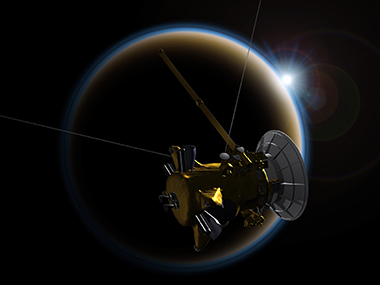 Scientists found deep, liquid-filled canyons on Saturns moon Titan for the first time. They also found a global ocean on the moon Enceladus, with ice plumes spouting from its surface. Thanks to these observations, Enceladus has become a promising target in the search for life outside Earth. A joint endeavour of NASA, the European Space Agency (ESA) and the Italian space agency, Agenzia Spaziale Italiana (ASI), Cassini was a sophisticated robotic spacecraft orbiting the ringed planet and studying the Saturnian system in detail. The spacecraft has produced 450,000 images and 635 gigabytes of data since it began probing Saturn and its 62 known moons in July 2004. Cassini also carried a probe called Huygens, which parachuted to the surface of Saturns largest moon, Titan, in January 2005 and returned spectacular results. Launched in October 1997, Cassini completed its initial four-year mission to explore the Saturn system in June 2008, and the first extension, called the Cassini Equinox Mission, in September 2010. In a second extension called the Cassini Solstice Mission, the spacecraft made new exciting discoveries. Late last year, the Cassini spacecraft executed a **daring set of ring-grazing orbits** . The spacecraft repeatedly climbed high above Saturns poles, flying just outside its narrow F ring 20 times. After a last flyby of the Saturns moon Titan, the spacecraft dived between Saturns uppermost atmosphere and its innermost ring 22 times.