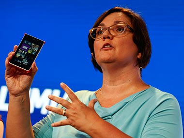 [caption id=“attachment_783865” align=“alignleft” width=“380”]  Executive vice president of smart devices Jo Harlow poses with the new Nokia Lumia 925 at its launch in London. Reuters[/caption]
