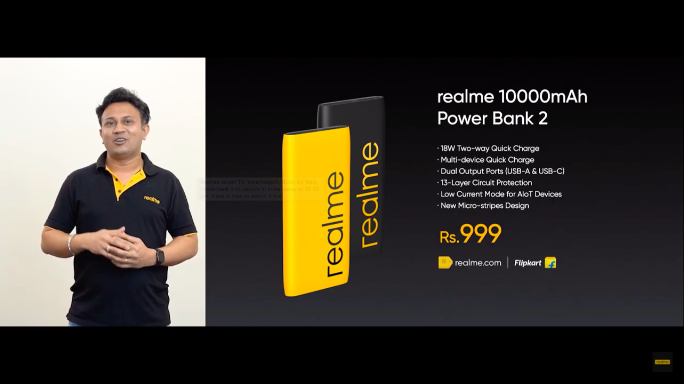 Yesterday, the company announced it on Twitter that it will also unveil a 10,000 mAh battery bank called Realme Powerbank 2 at the event. The image teased confirmed that the powerbank will come in a black colour option.