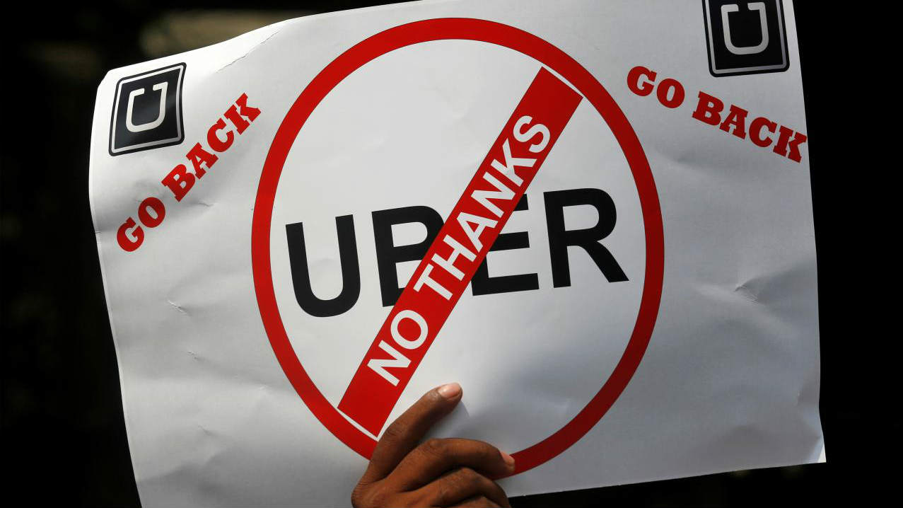 Protest against Uber CEO Bhavish Aggarwal. Image: Reuters[/caption] In both cities, passengers said they had to wait longer than normal for Uber and Ola cars. At a protest outside Uber’s office in Mumbai, dozens of drivers held up placards with messages including “Uber go back” and “Ola is the biggest thief” while shouting slogans like “down with Uber”, according to a Reuters witness. One protestor was seen angrily beating a poster of Ola’s founder