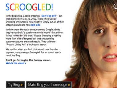 San Francisco: Watch out holiday shoppers. You just got Scroogled! At least according to Microsoft…